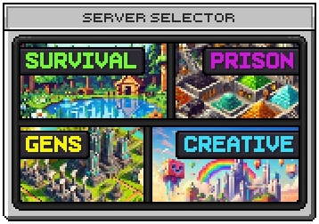 Easily switch between different servers within our network using the Server Selector system. Access the selector GUI or use direct commands to quickly jump to your desired server.