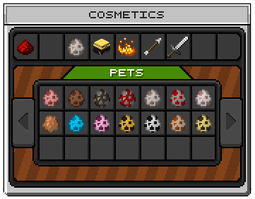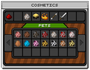 /cosmetics - Open cosmetics menu to customize particles, pets, tags, etc.