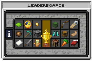 See how you stack up against other players in multiple stats! Stats are tracked for Blocks Broken, Money, Coins, Kills, Pickaxe Level, and much more.