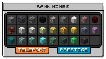 Mining is the heart of our Prison server, categorized from A-Z and followed by 4 prestigious mines. Each rank and higher mine offers progressively valuable blocks to mine. After reaching Rank Z, players can enter the prestige system. Prestiging resets your rank back to A but offers various advantages for a fresh start.