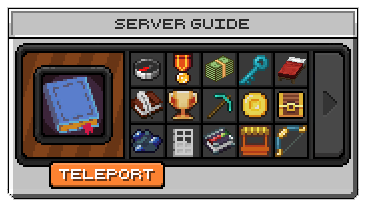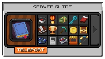 /help or /serverguide — Opens the Server Guide Menu, showing the most important prison features at a glance (Getting Started, Basic Commands, Cells, Economy, Mines, Ranks, Prestiges, etc.).