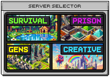 Easily switch between different servers within our network using the Server Selector system. Access the selector GUI or use direct commands to quickly jump to your desired server.