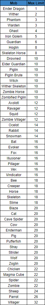 | Mob | Max Limit |