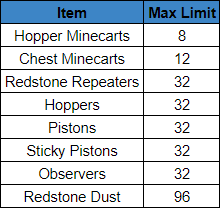 | Redstone Repeaters | 32 |